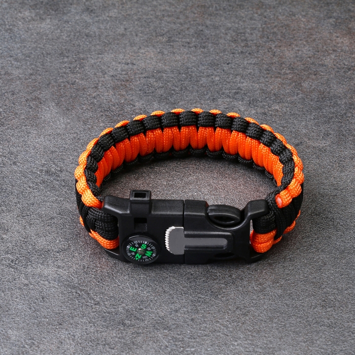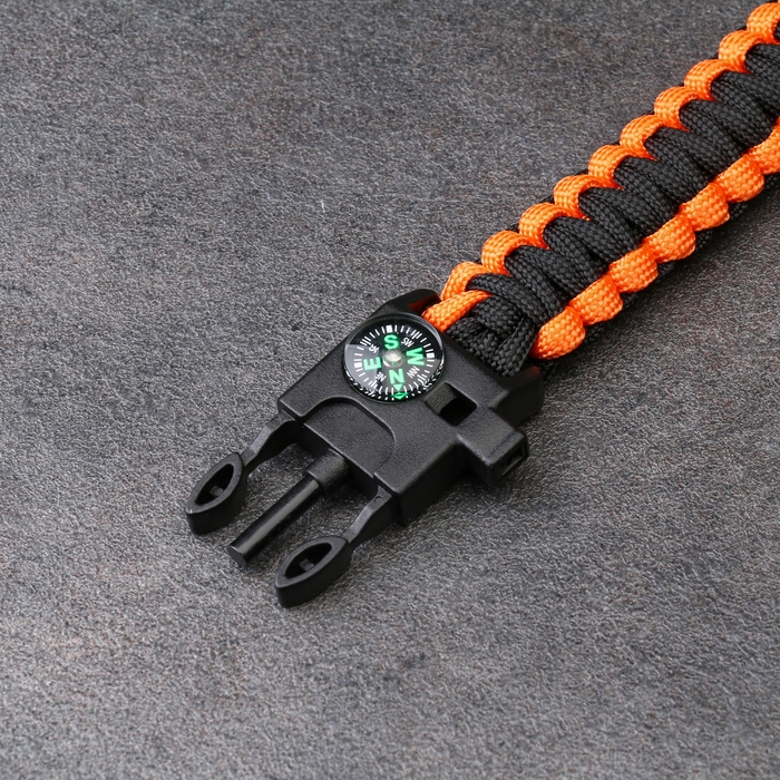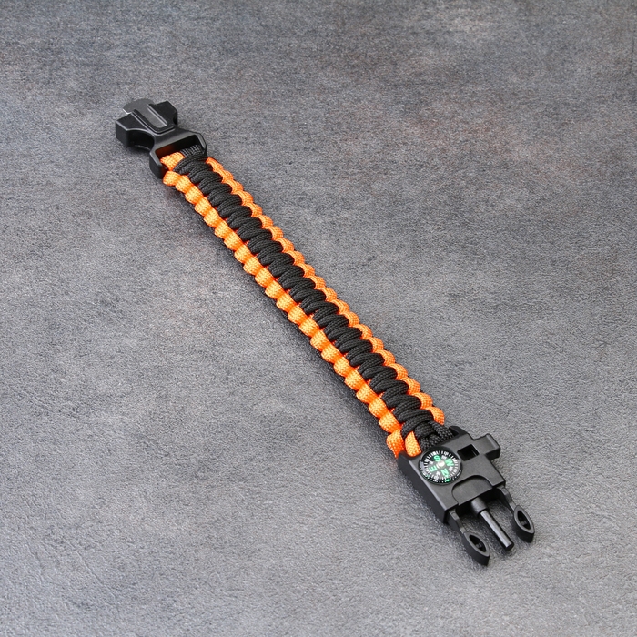 Браслет для выживания 4в1 (паракорд, компас,свисток,огниво), черно-оранжевый