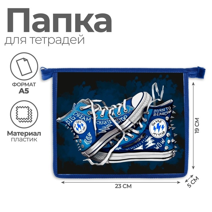 Папка для тетрадей А5, 230 х 190 х 50 мм, молния сверху, пластиковая, Calligrata "Кеды"
