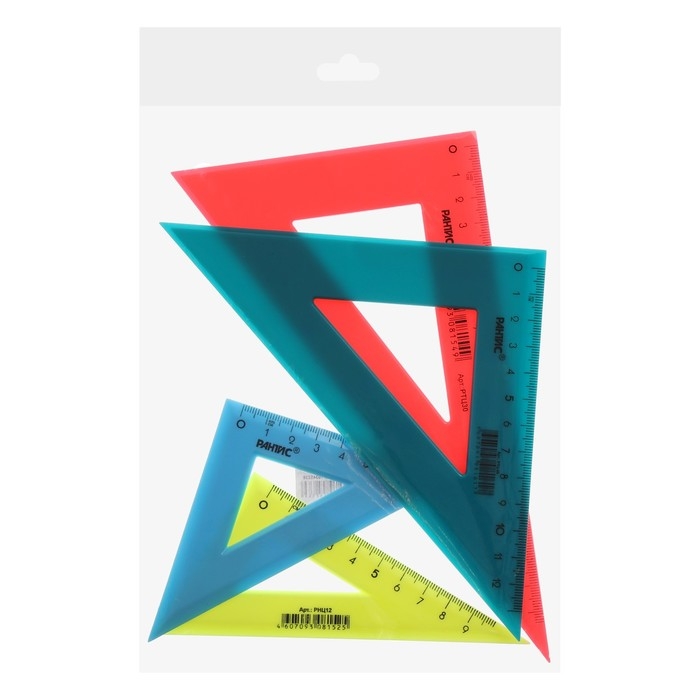 Набор треугольников 4 штуки, Calligrata катет 9/12/14/20 см, непрозрачные, МИКС