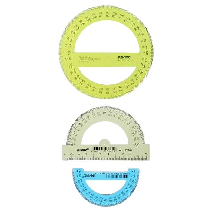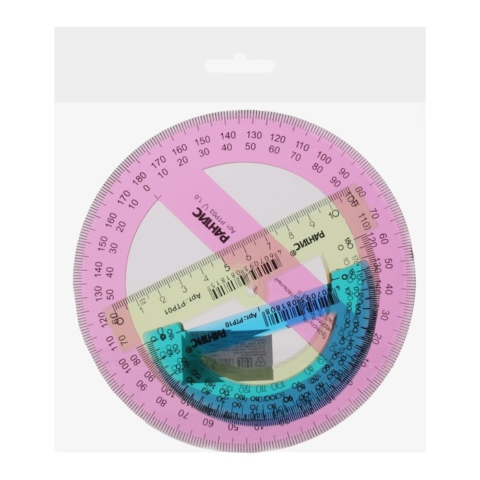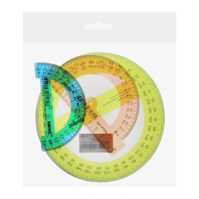 Транспортир Calligrata– незаменим для чертёжных и измерительных работ. Окружность изделия – 180/360°, длина – 10 см. Товар является прочным. Отверстие для карандаша позволяет точно находить центр и вычерчивать окружность. У транспортира ровная и чёткая миллиметровая отливная шкала, безопасные закруглённые края и гладкая глянцевая поверхность
