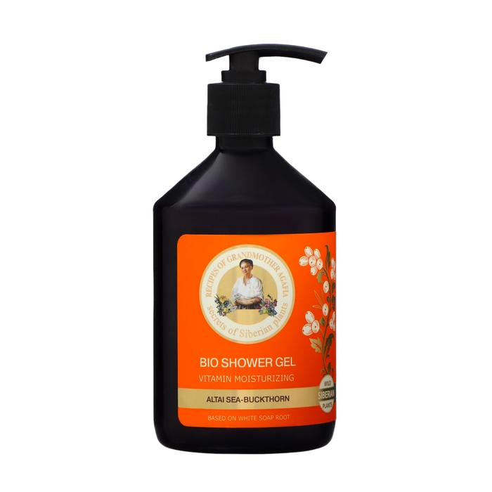 Гель для душа "Рецепты бабушки Агафьи. Витаминное увлажнение", объёмом 500 мл, предназначен для бережного очищения и питания кожи тела. Продукт основан на старинных рецептах сибирской травницы Агафьи Тихоновны Ермаковой, которые передавались из поколения в поколение и тщательно охранялись в семье.
