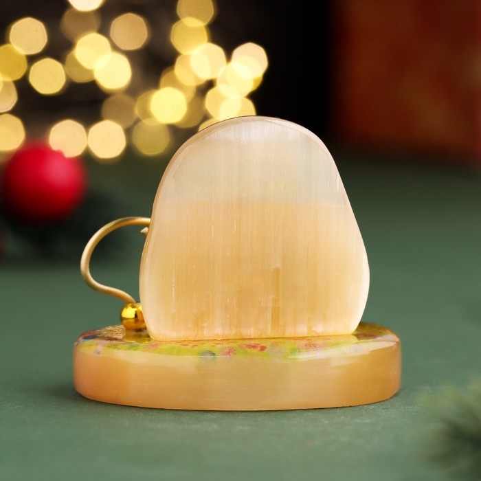 Новый год. Сувенир "Уюта и радости в дом! 2025", с колокольчиком, селенит, 6х6х4,5 см
