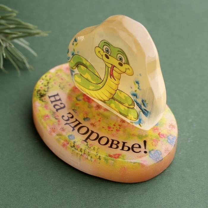 Новый год. Сувенир "Змея На здоровье! 2025", селенит, 6х6х4,5 см
