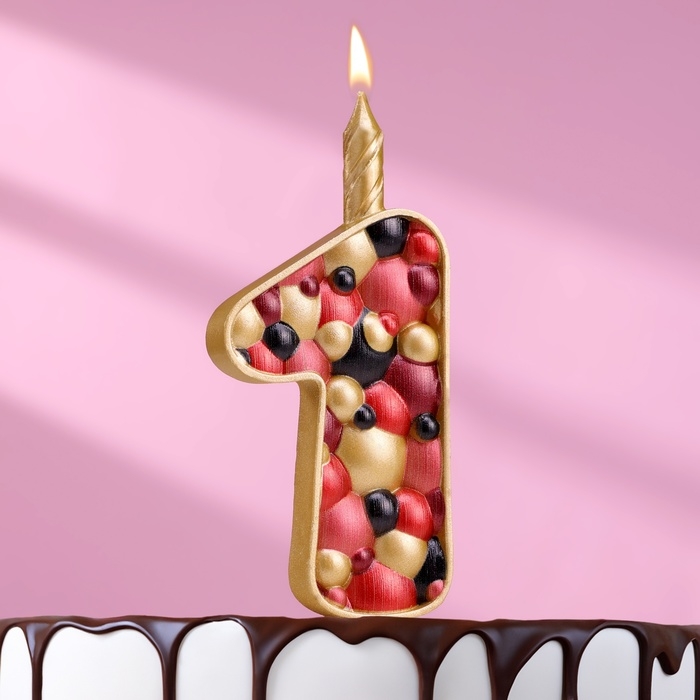Свеча для торта "Пузырьки", цифра "1", 10 см, золото