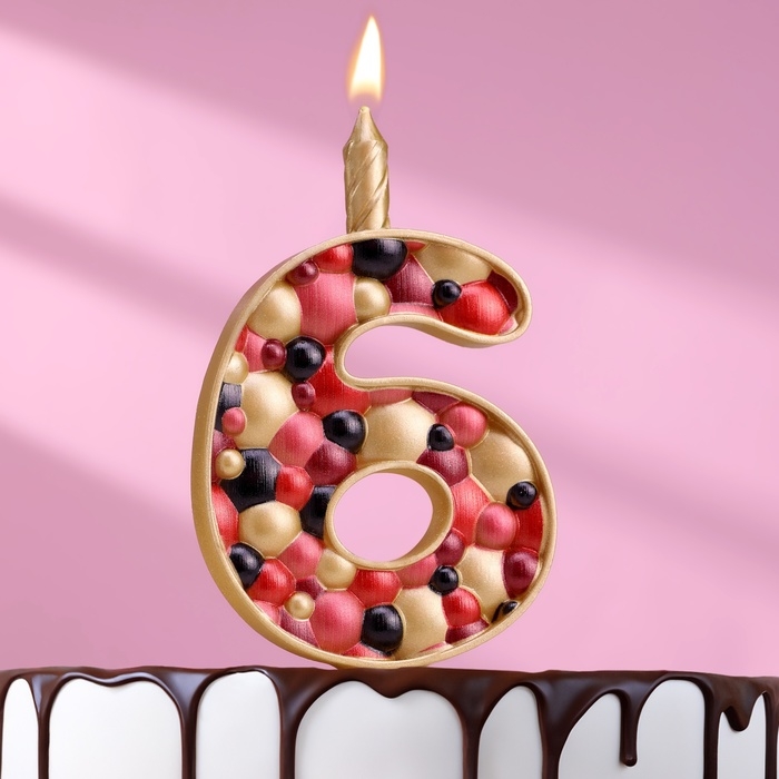 Свеча для торта "Пузырьки", цифра "6", 10 см, золото