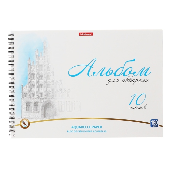 Альбом для акварели А4, 10 листов на спирали, ErichKrause Towers, блок 180 г/м², экстра белая, перфорация для отрыва, твёрдая подложка