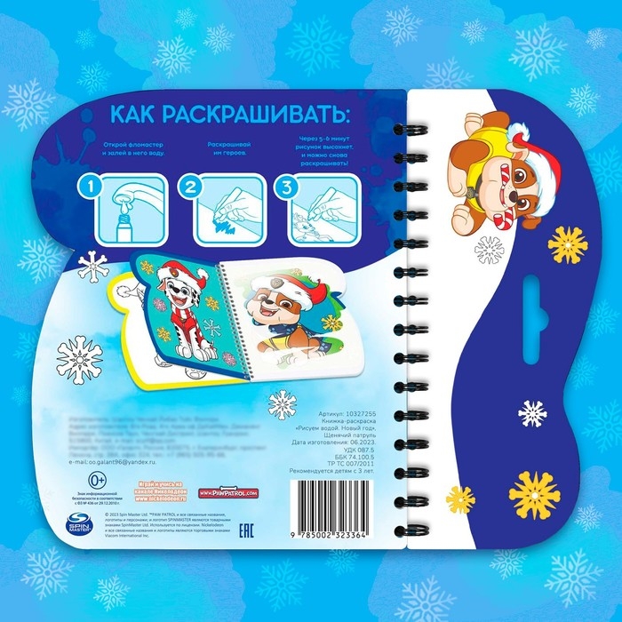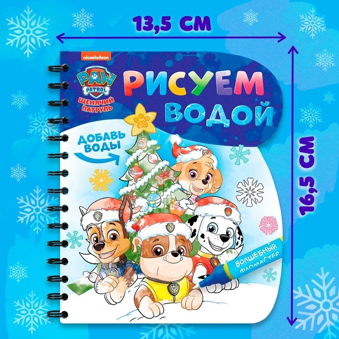 Книжка-раскраска «Рисуем водой. Новый год», Щенячий патруль
