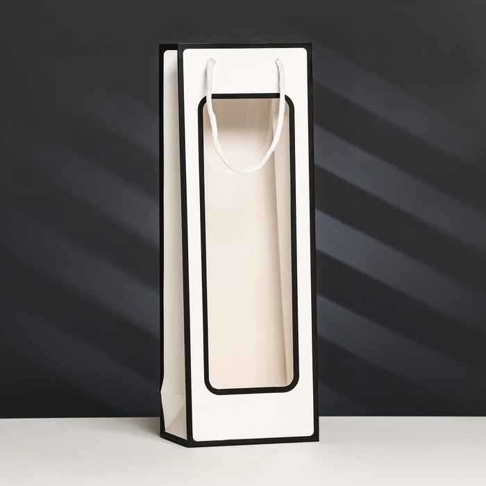 Пакет-переноска для цветов, с PVC окном, 12,5 × 8,5 × 36 см, белый с каймой