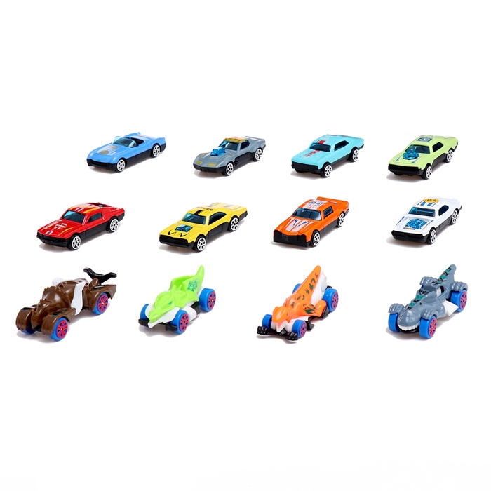 - 12 машинок (4 дино-машины и 8 металлических машинок) обеспечивают разнообразие и позволяют устраивать настоящие гонки.