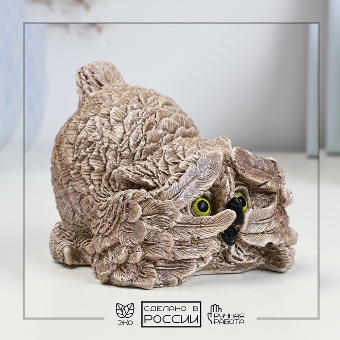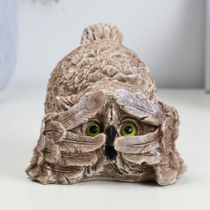 Фигура "Сова подглядывает" бежевая, 6,5х8х9см