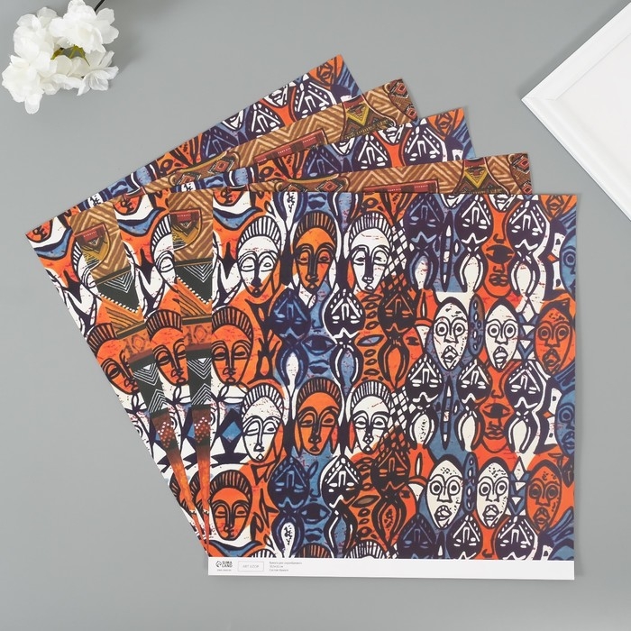 Бумага для скрапбукинга двусторонняя "Африка" плотность 180 гр набор 5 шт 30,5х32 см