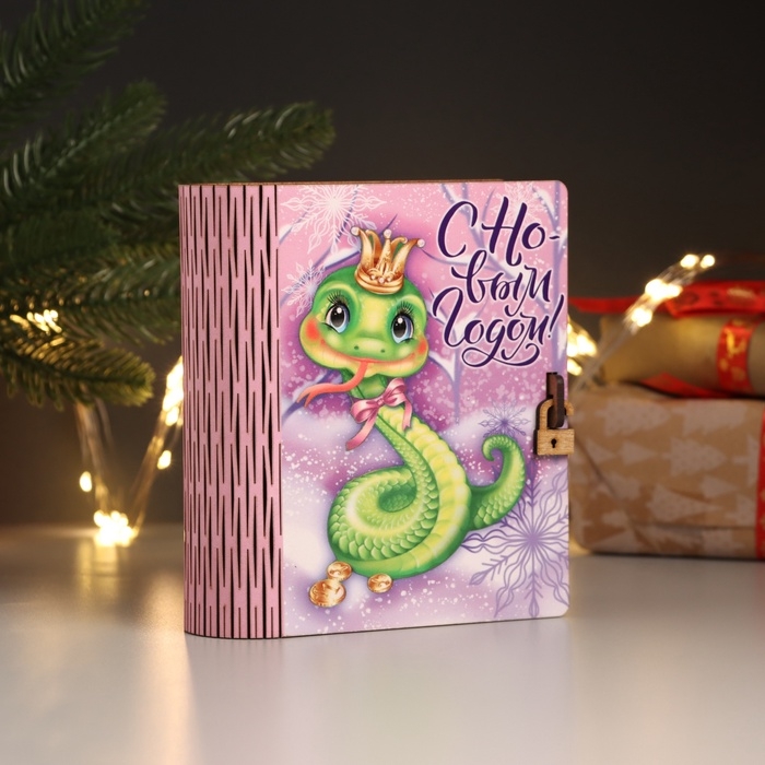 Новогодняя шкатулка-книга "Змейка с короной" 14х12х5 см