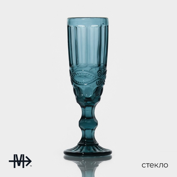 Набор бокалов из стекла для шампанского Magistro «Ла-Манш», 160 мл, 7×20 см, 2 шт, цвет синий