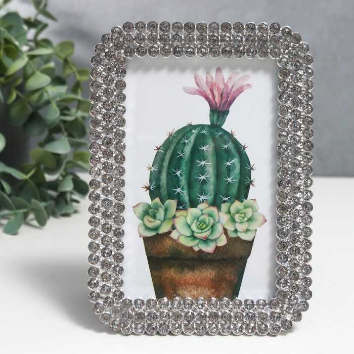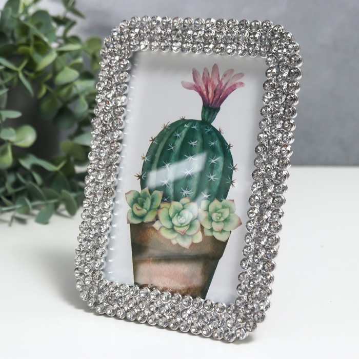 Фоторамка пластик 10х15 см "Пояс из страз" серебро 17,5х12,5 см