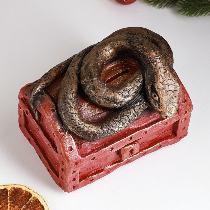 Новый год. Символ 2025. Копилка "Змея на сундуке" 16х11х14см, цветная