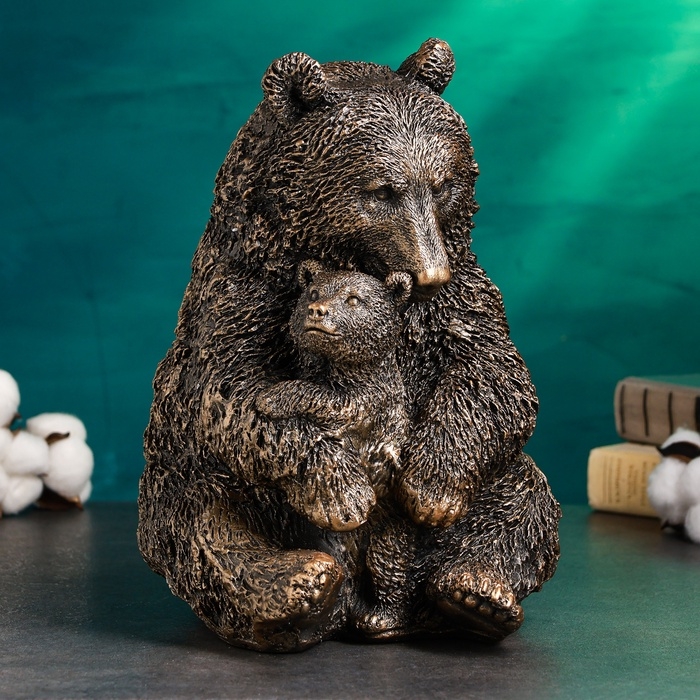 Копилка "Медведица с медвежонком" 20х23х30см, бронза