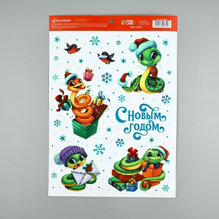 Интерьерная наклейка со светящимся слоем «С Новым годом», 21 х 29.7 см , Новый год