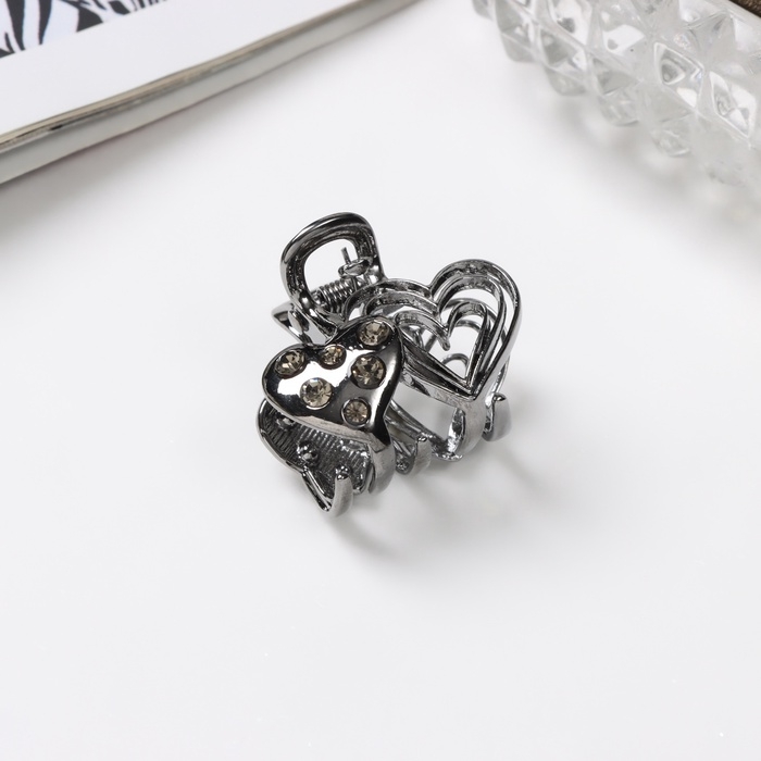 Краб для волос "Оливия" сердца, 2,5 см, чёрный