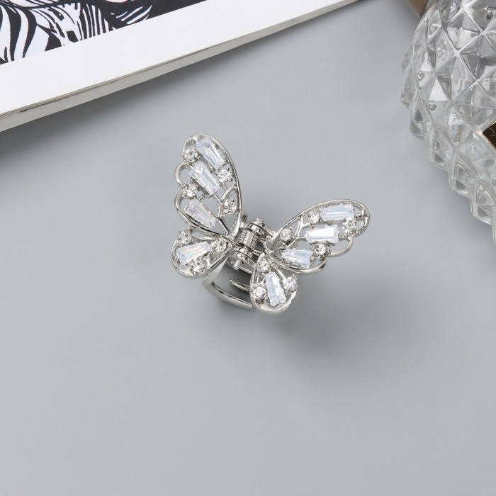 Краб для волос "Доротеа" бабочка, 4 см, серебро