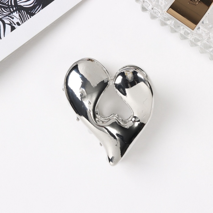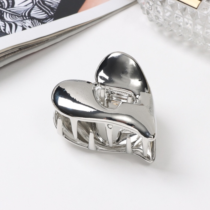 Краб для волос "Пейдж" сердце, 6 см, серебро
