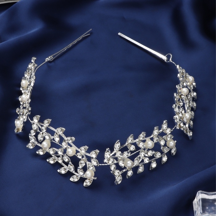 Аксессуар для волос "Леона" веточки, 26 см, серебро
