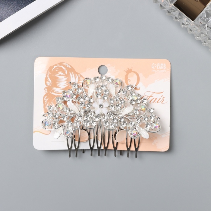 Гребень для волос "Джуди" цветочный, 8х6 см, серебро