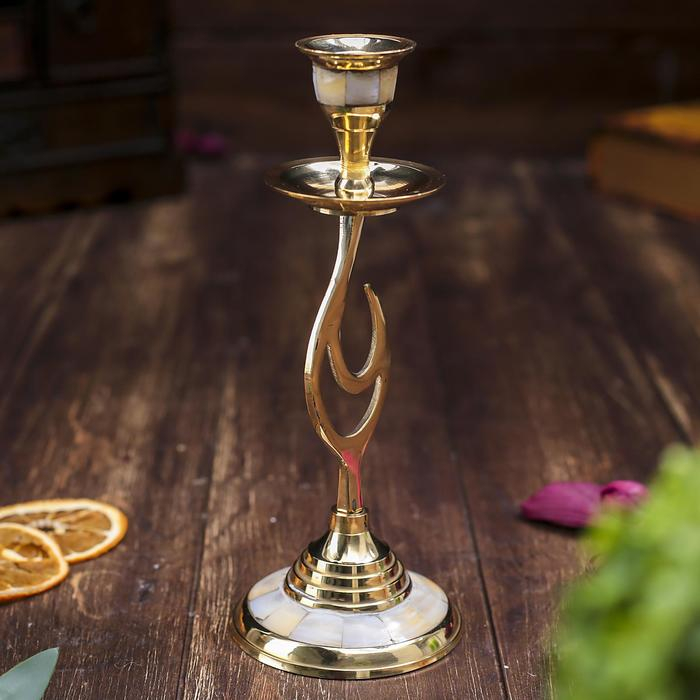 Подсвечник на 1 свечу с перламутром изгиб 21см