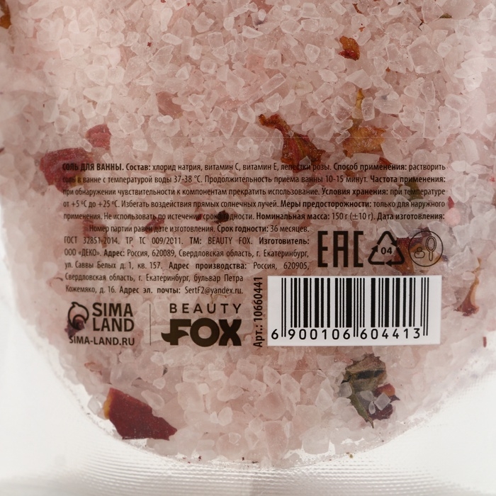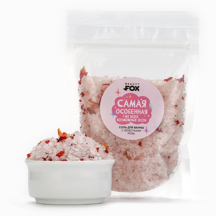 Соль для ванны с лепестками розы "Самая ОСОБЕННАЯ из всех возможных особ", 150 г, BEAUTY FOX