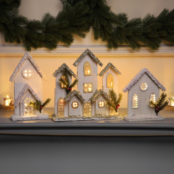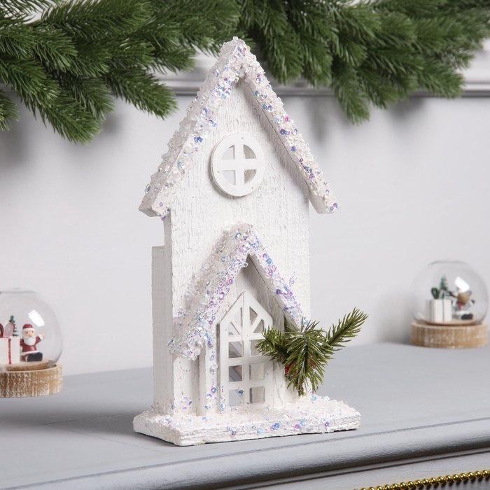 Фигура деревянная "Изба белая", 27х17х6 см, 3 LED, батарейки AAx2 (не в комплекте), свечение теплое белое