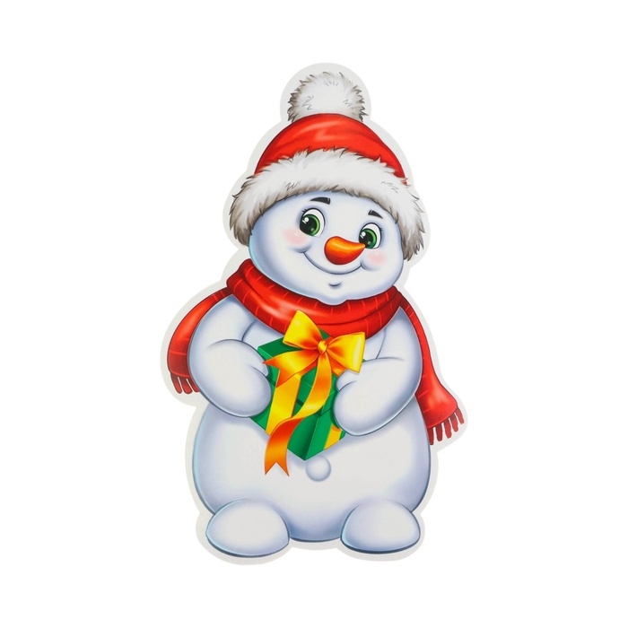 Плакат вырубной "Снеговик с подарком" двухсторонний, 23 х 22 см
