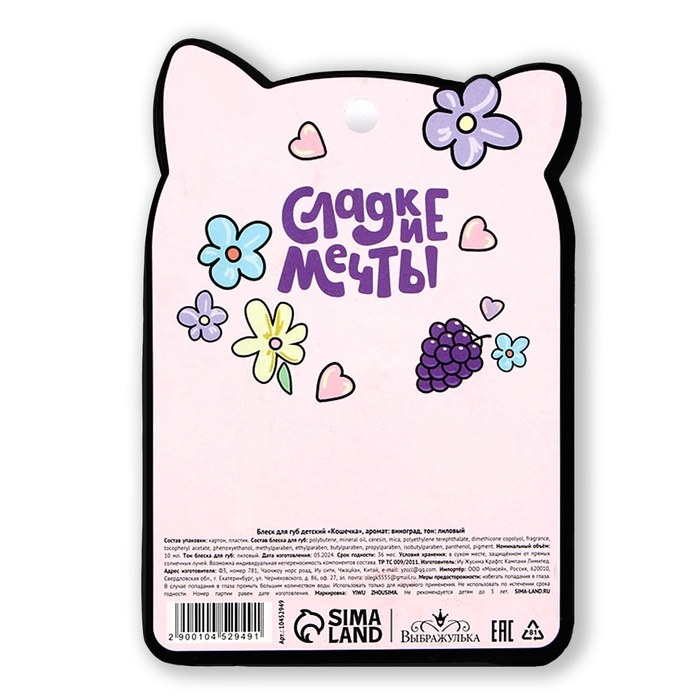 Блеск для губ детский «Кошечка», аромат винограда