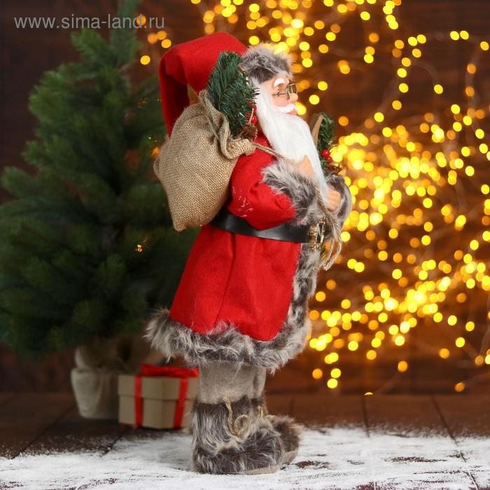 Дед Мороз "В красной шубке с лыжами и подарками" 45 см