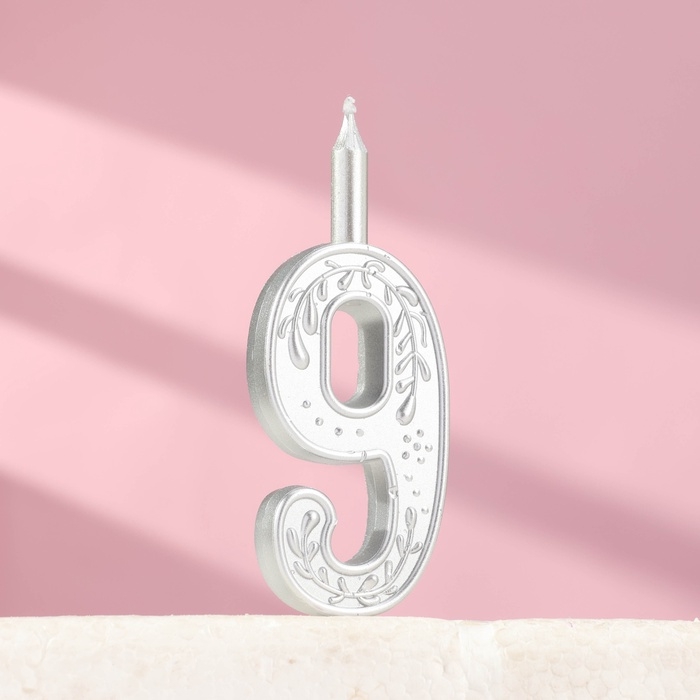 Свеча для торта "Серебряный узор", цифра "9"