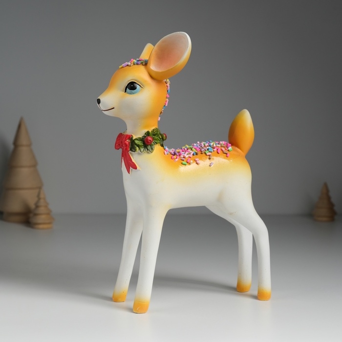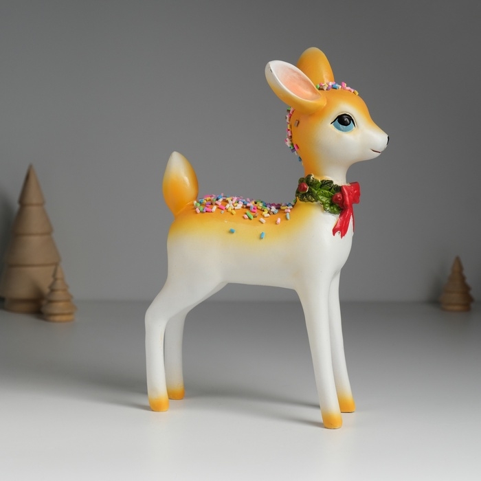 Сувенир полистоун "Олень с посыпкой в новогоднем венке" 14,5х8,5х22 см