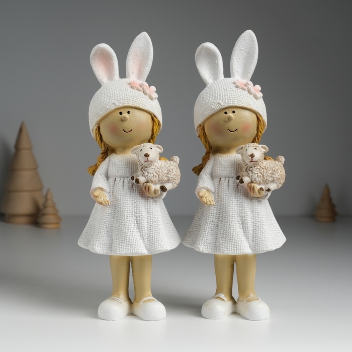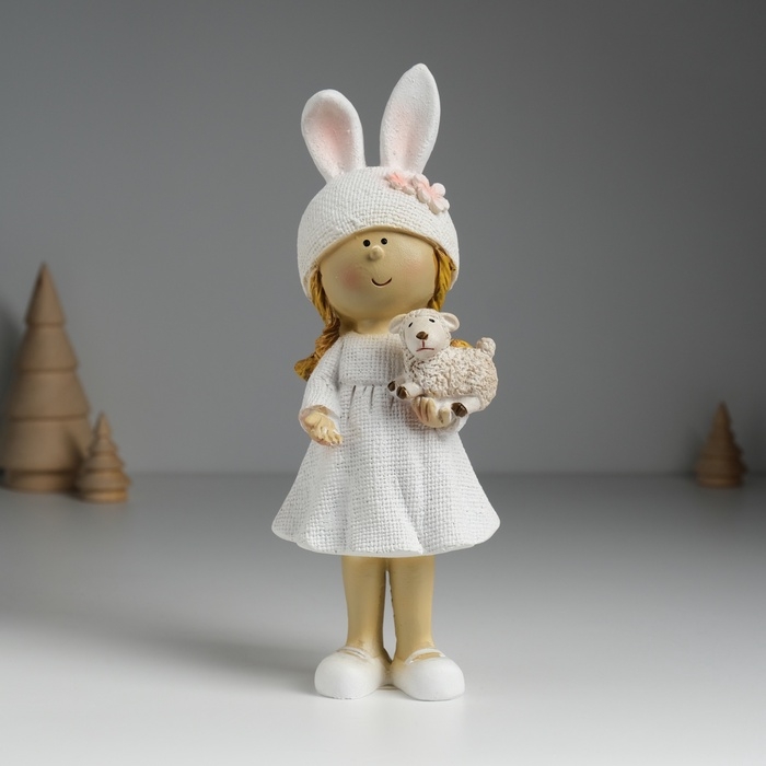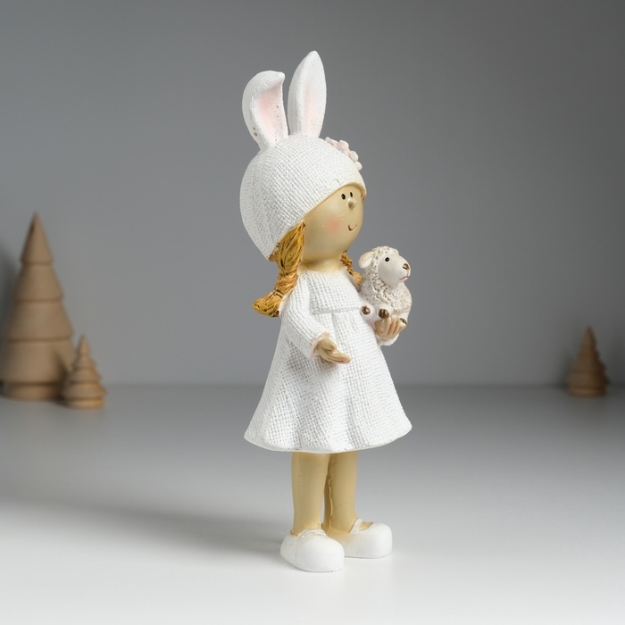 Сувенир полистоун "Девочка в шапке с ушками, с барашком" МИКС 8х6х22 см