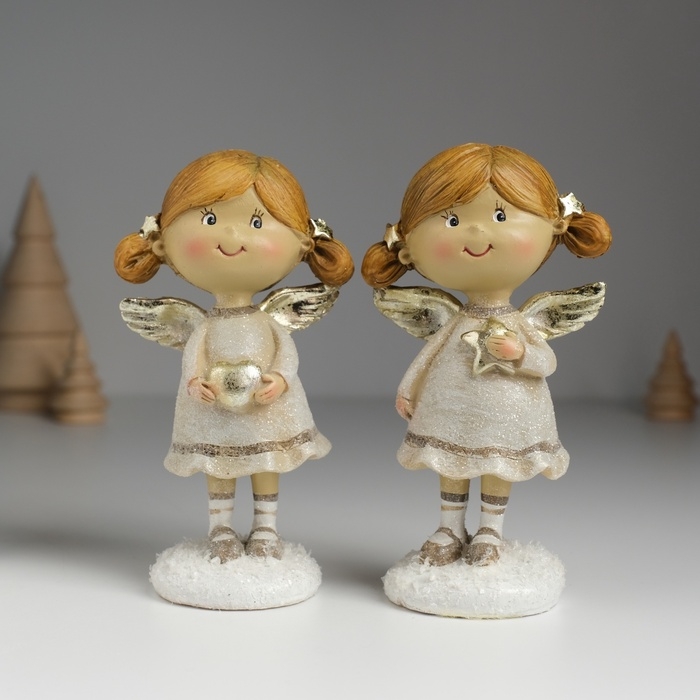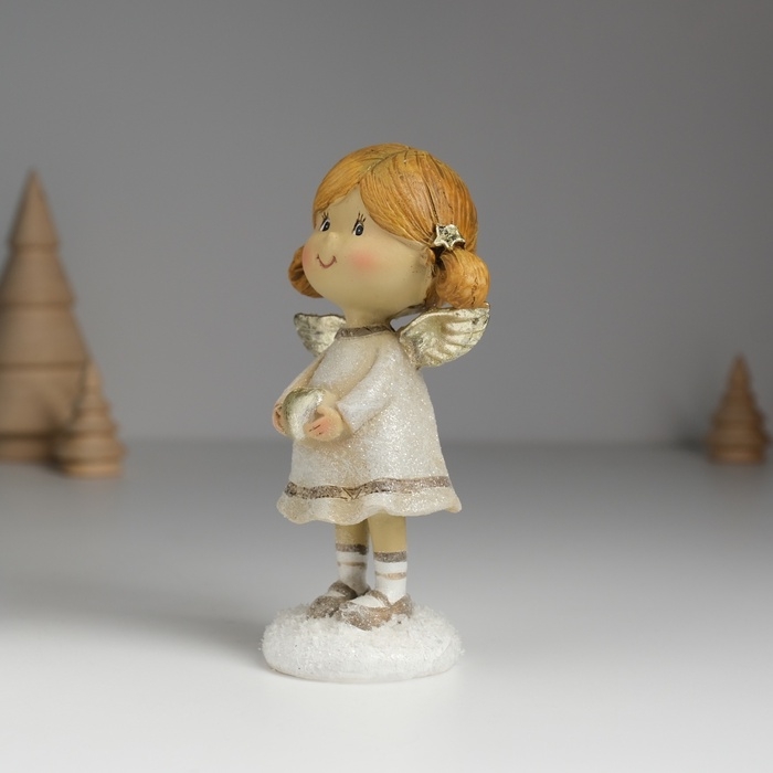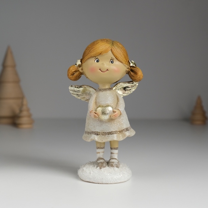 Сувенир полистоун "Ангелочек с хвостиками, в сером платье" МИКС 6,5х4,5х12 см
