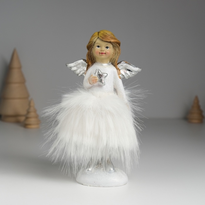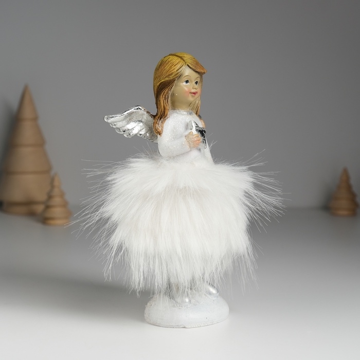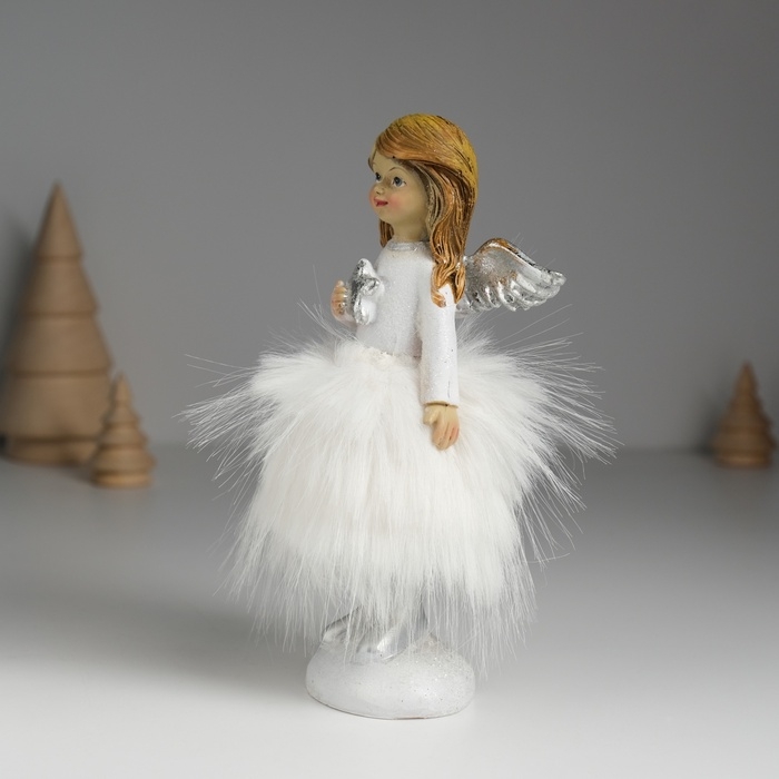 Сувенир полистоун "Ангелочек в белом платье с меховой юбкой" МИКС 8,5х8х15,5 см