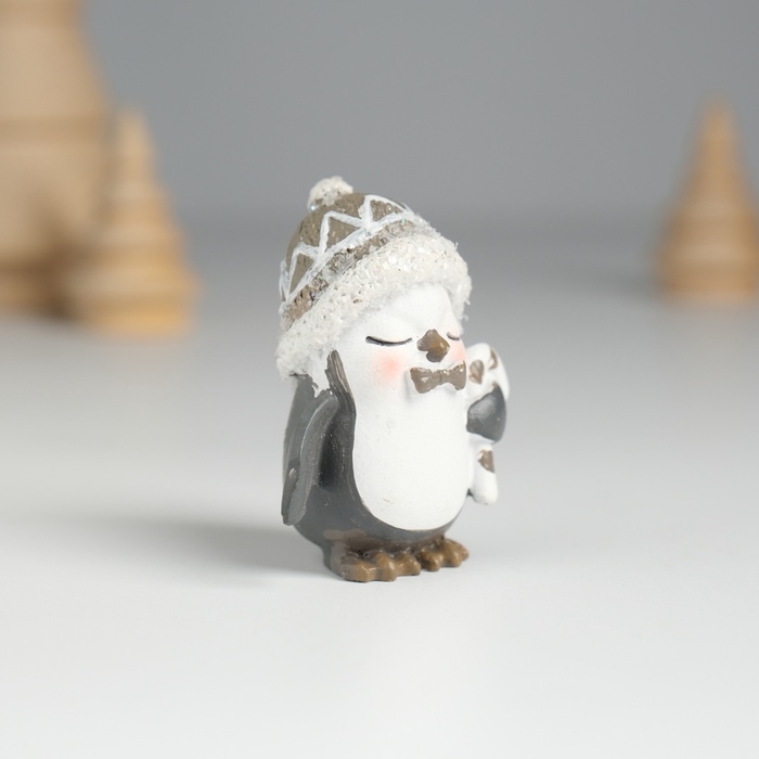 Сувенир полистоун "Пингвин в шапке, с леденцом" 3,5х2,5х4,6 см