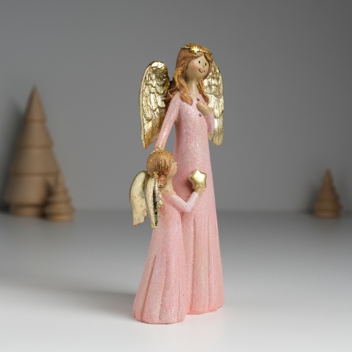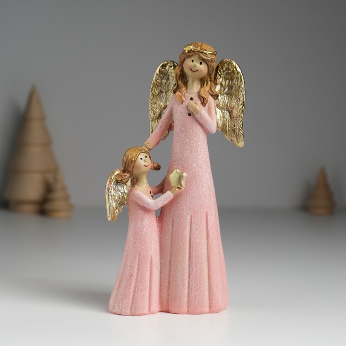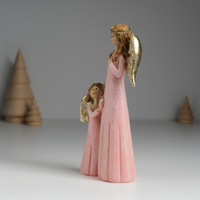 Сувенир полистоун "Ангел с ангелочком в розовых платьях" 6,5х4х15,5 см