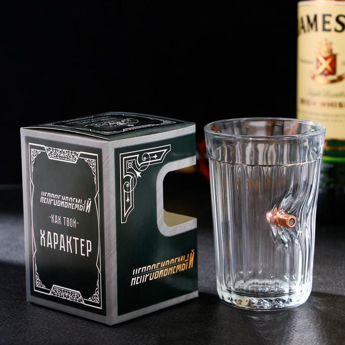 Стакан граненый с пулей "Непробиваемый. Характер", 250 мл