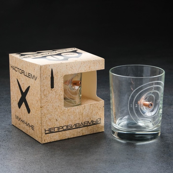 Стакан "Непробиваемый", с пулей, для виски, гравировка, 250 мл