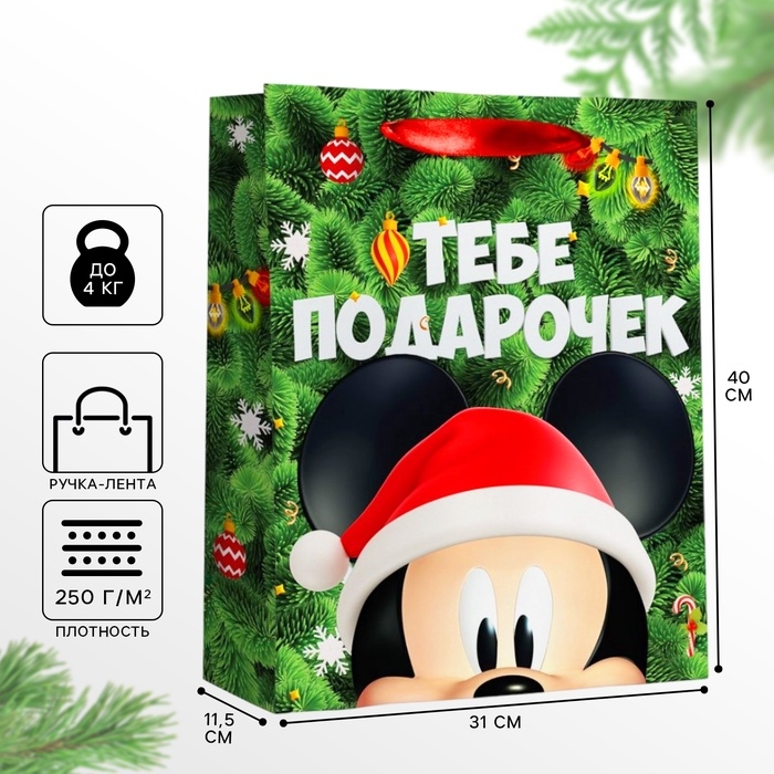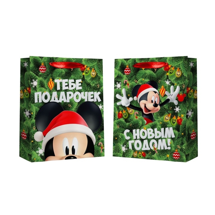 Новый год. Пакет подарочный, 31х40х11.5 см, упаковка, Микки Маус