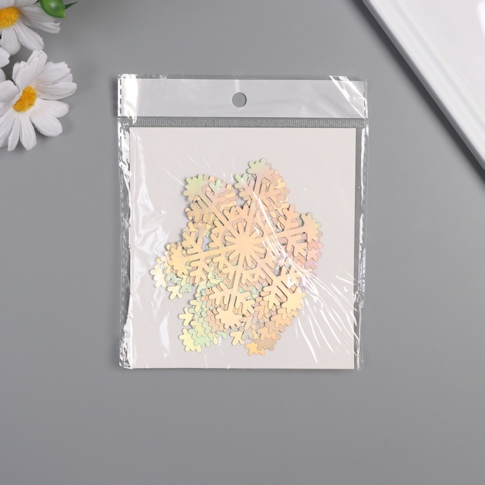 Наклейка бумага, пластик "Снежинки" серебро переливы набор 8 шт 9,5х8,5 см