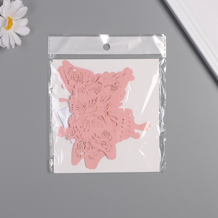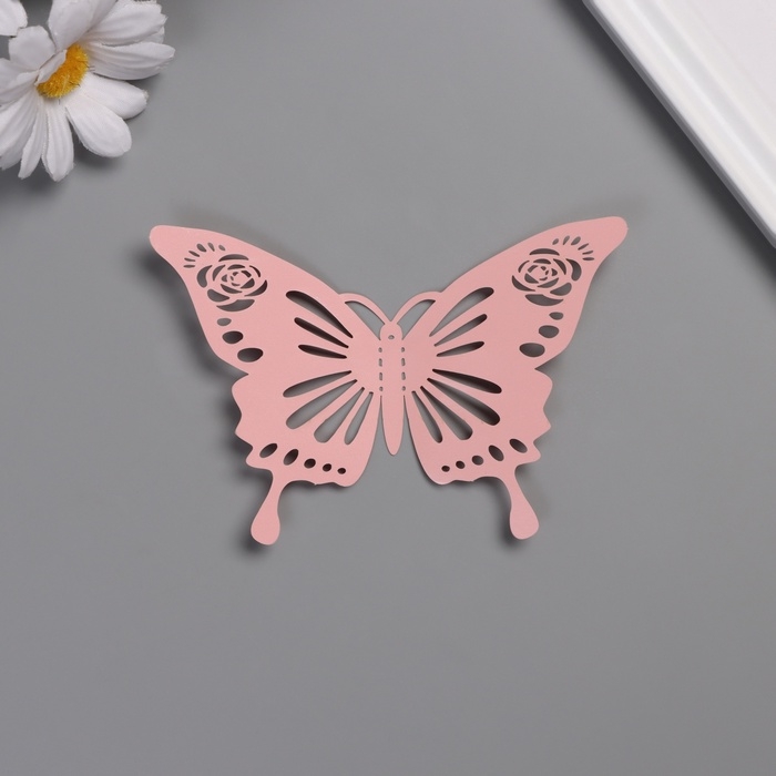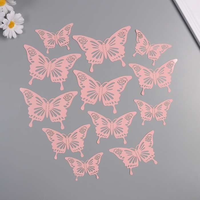 Наклейка бумага "Бабочки с розами" матовый розовый набор 12 шт 12 см, 10 см, 8 см