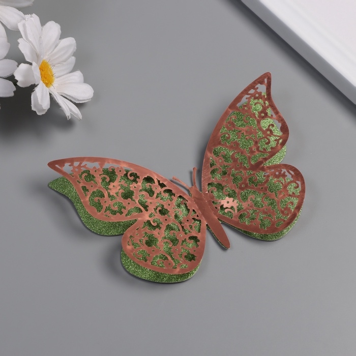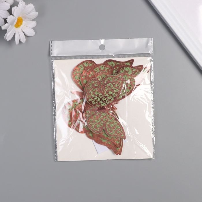 Наклейка бумага, пластик "Цветочные зелёные бабочки" блёстки набор 12 шт 12 см, 10 см 8 см 1052425