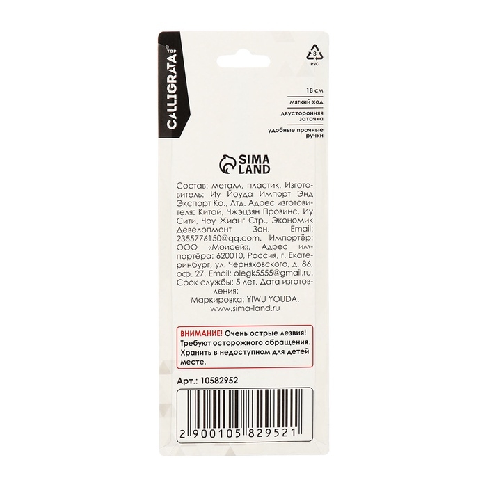 Ножницы канцелярские 18,0см Офис пластиковые ручки, европодвес