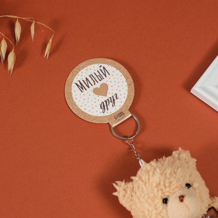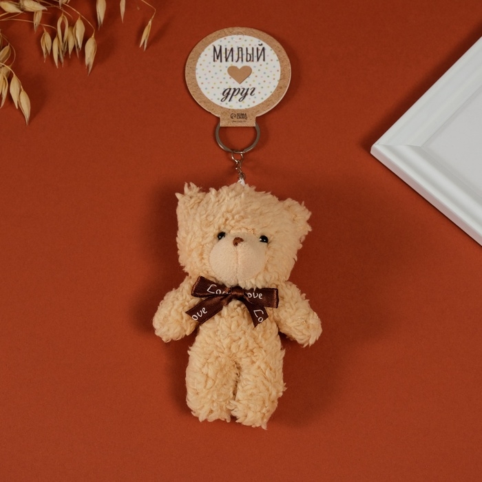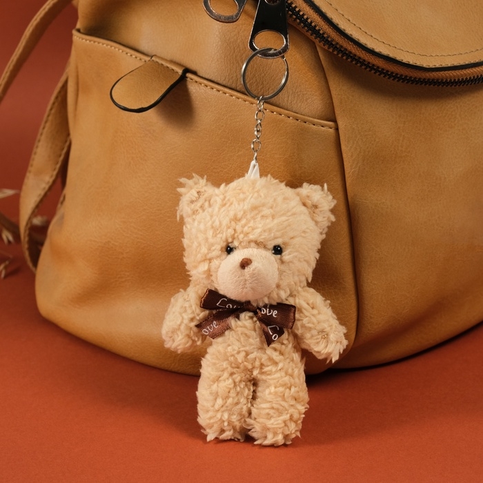 Брелок текстиль "Мишка бежевый с бантиком" 8х5х13 см