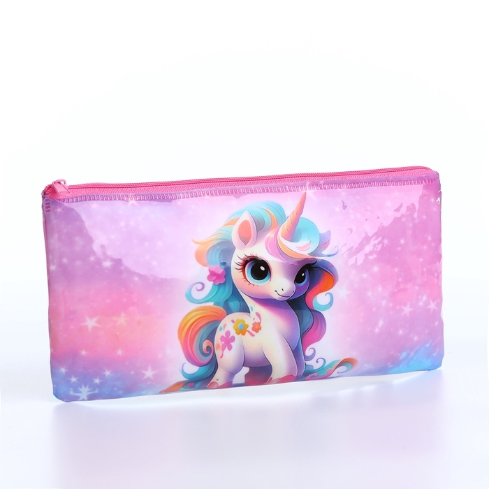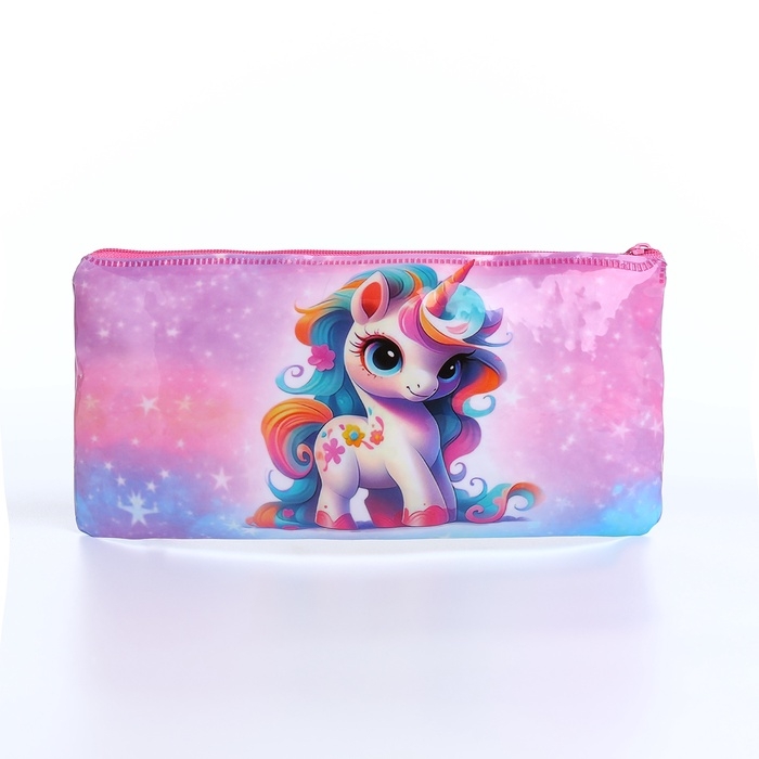 Косметичка-пенал Единорог, 20,5*0,5*9,5см, отд на молнии, розовый