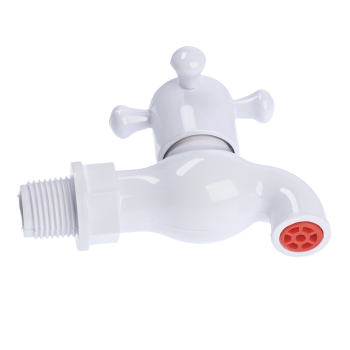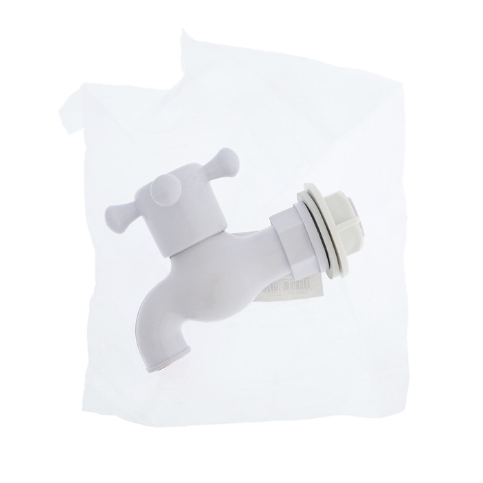Кран водоразборный ZEIN, с крестовой ручкой, PP, с шаровым механизмом, белый, с гайкой