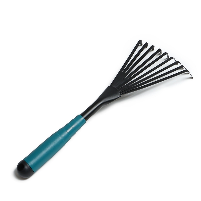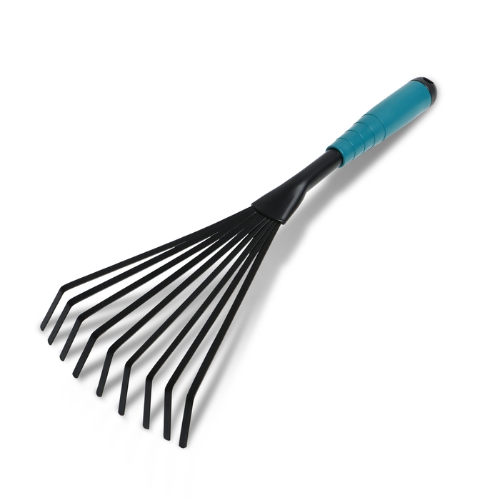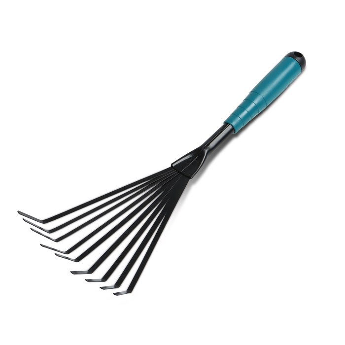 Грабли малые, веерные, пластинчатые, 9 зубцов, длина 52 см, металл, металлическая рукоять с резиновой ручкой, Greengo